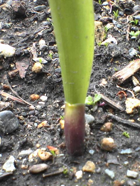 アイヌネギの葉は 「ハリセン」 の様に折りたたまれた状態で茎内に収まっているのに対し、