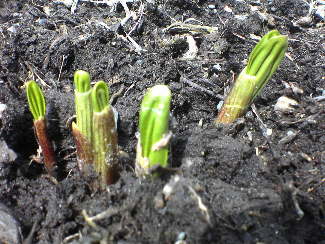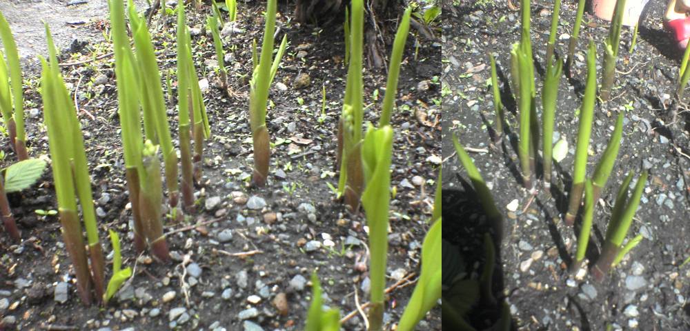 小さな芽でもアイヌネギは強力なニンニク臭がしますから、一発で見分けが付きます(笑)