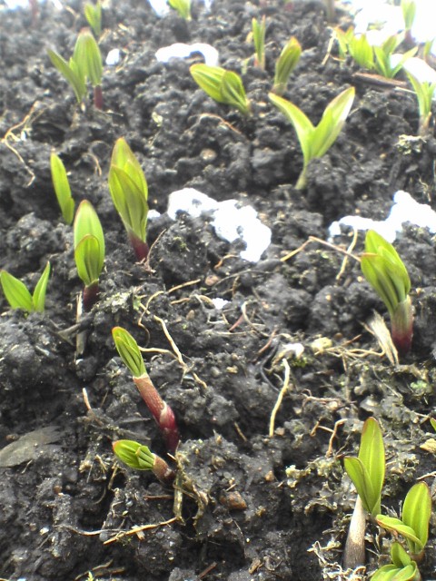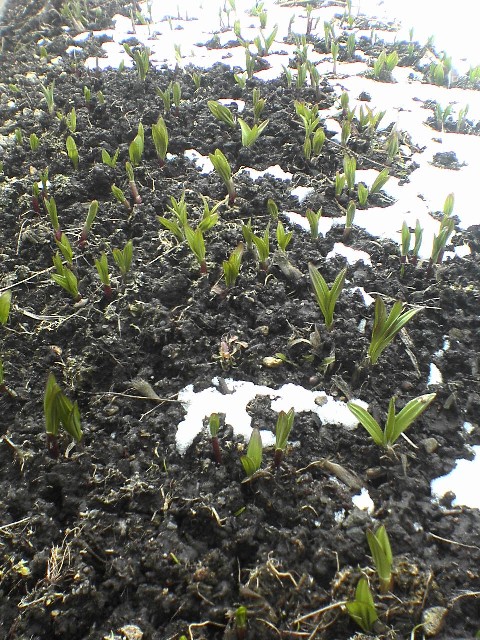 去年蒔いた種も発芽し始めました。