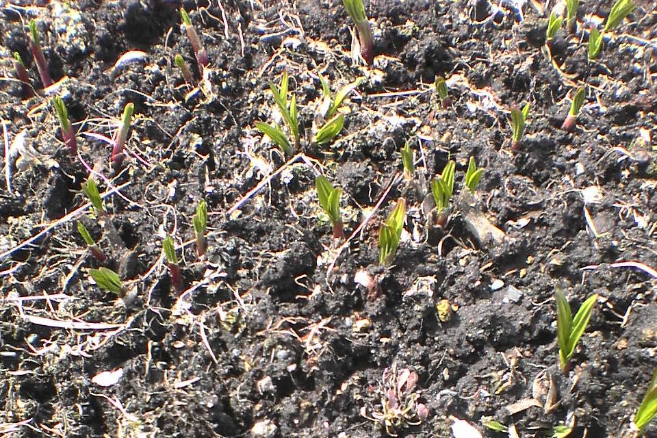 で、今週のアイヌネギ(行者ニンニク)は御覧の通り。続々と芽が出ています。